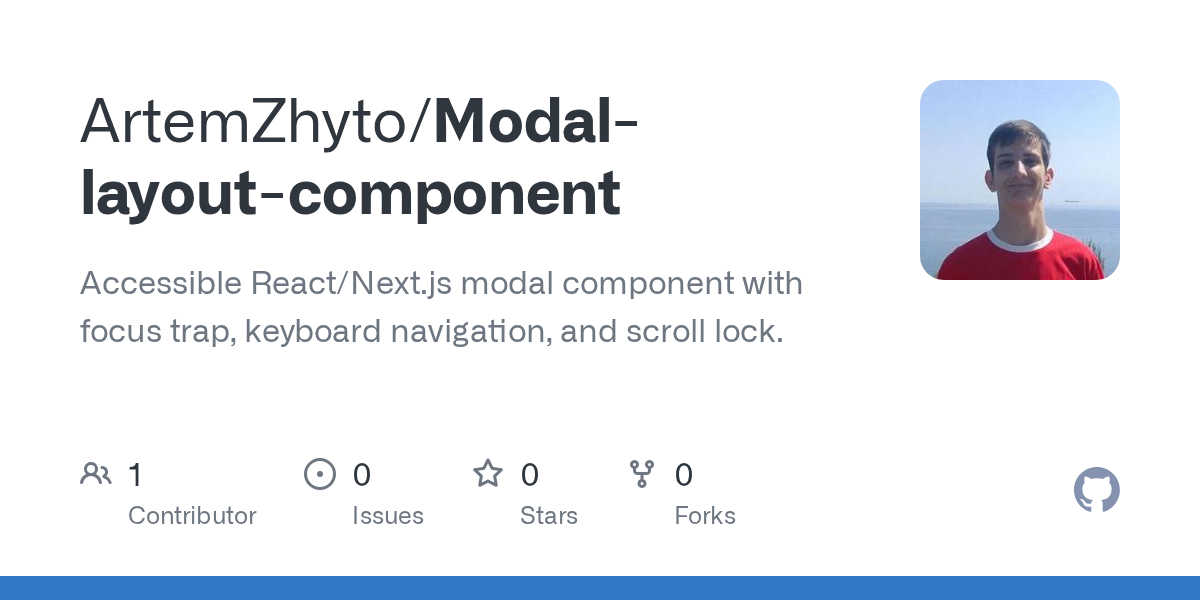 Accessible React/Next.js modal component with focus trap, keyboard navigation, and scroll lock.